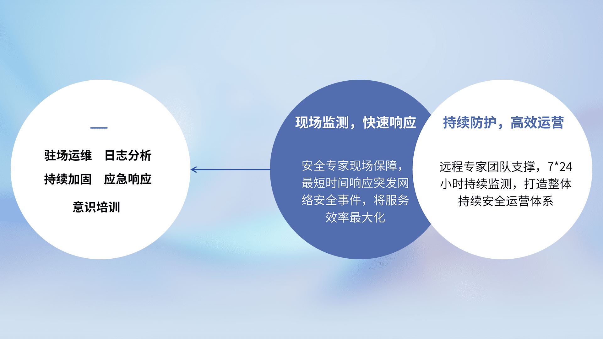 7X24小时持续监测安全事件,保持安全策略有效性,降低资产脆弱性风险,,,精准拦截黑客攻击,,,,减少被黑客利用的机会,,,,第一时间遏制,,,降低损失。。。